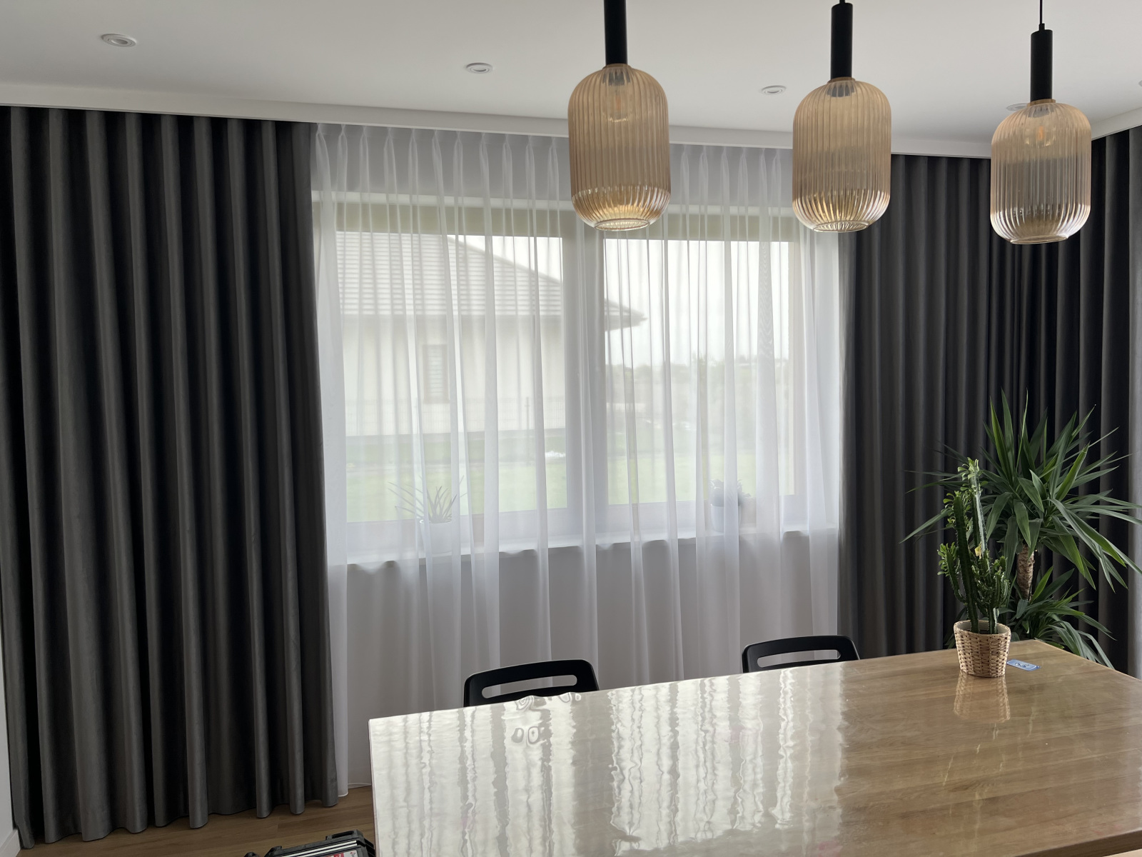 Wszystkie tkaniny profesjonalnie uszyjemy na taśmie marszczącej, kołach, fleksach lub systemie wave, aby udekorować wnętrze każdego klienta.